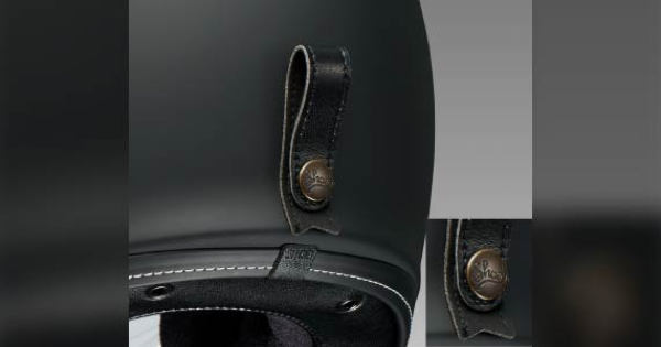▲ 後方裝有護目鏡帶,使用帶按扣的按鈕,並在頭部背面刻有 SHOEI 徽標